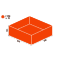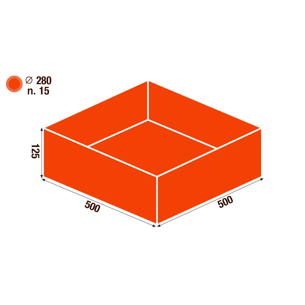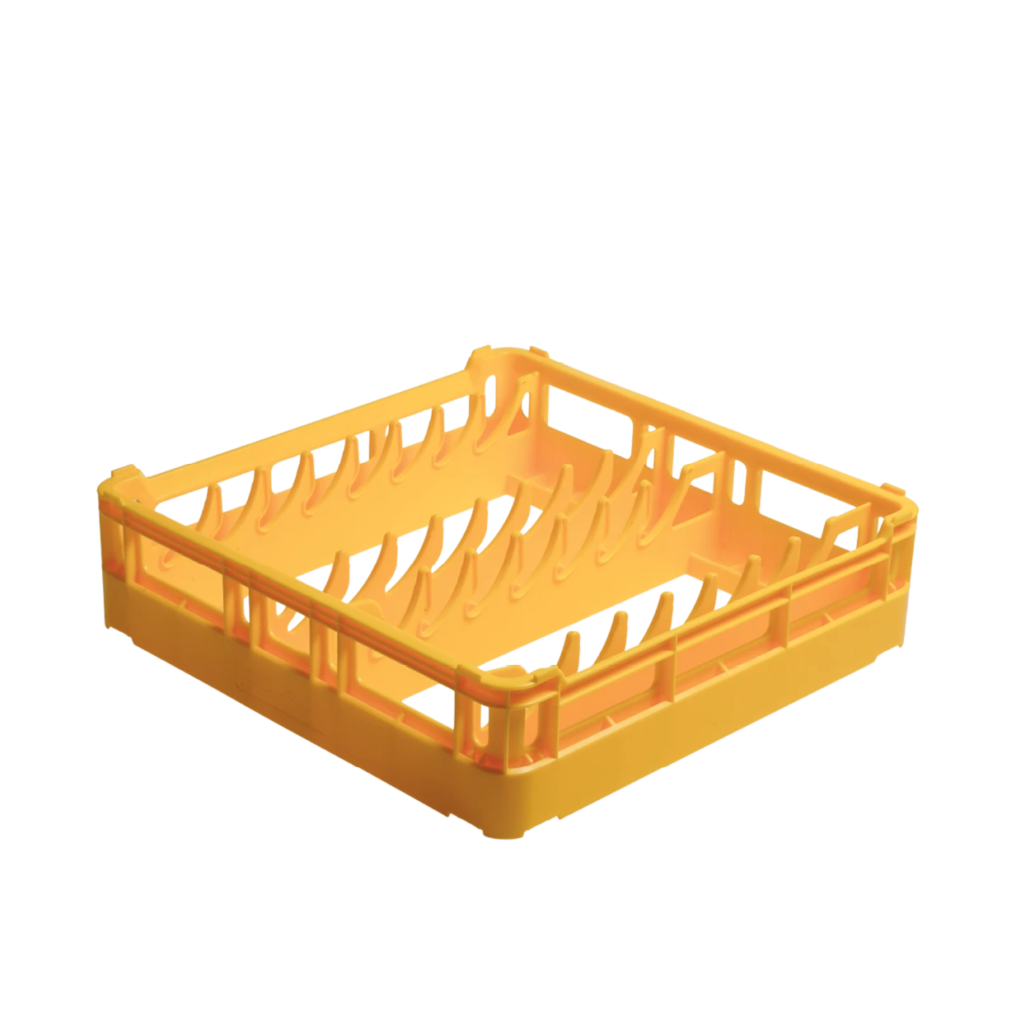 Der Tellerkorb wird in einer Kunststoff Ausführung geliefert und verfügt über ein Außenmaß (BxTxH) von 500 x 500 x 125 mm.
